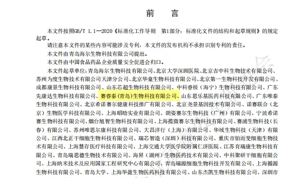 赛睿泰(青岛)生物科技有限公司作为副组长单位参与制定的“人源间充质干细胞外泌体制备与检验规范”团标正式颁布!